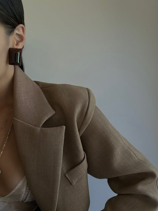 Rare 1980s Yves Saint Laurent Brown Block Earrings