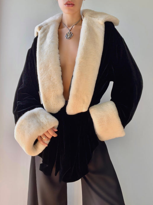 RARE JEAN PAUL GAULTIER FEMME Black Velvet Fur Trimmed Robe Coat